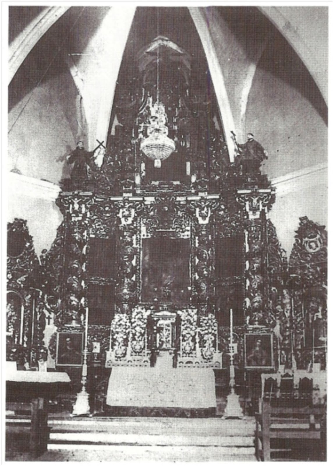 tenia únicamente tres altares, el mayor dedicado a la Virgen de la Junquera,