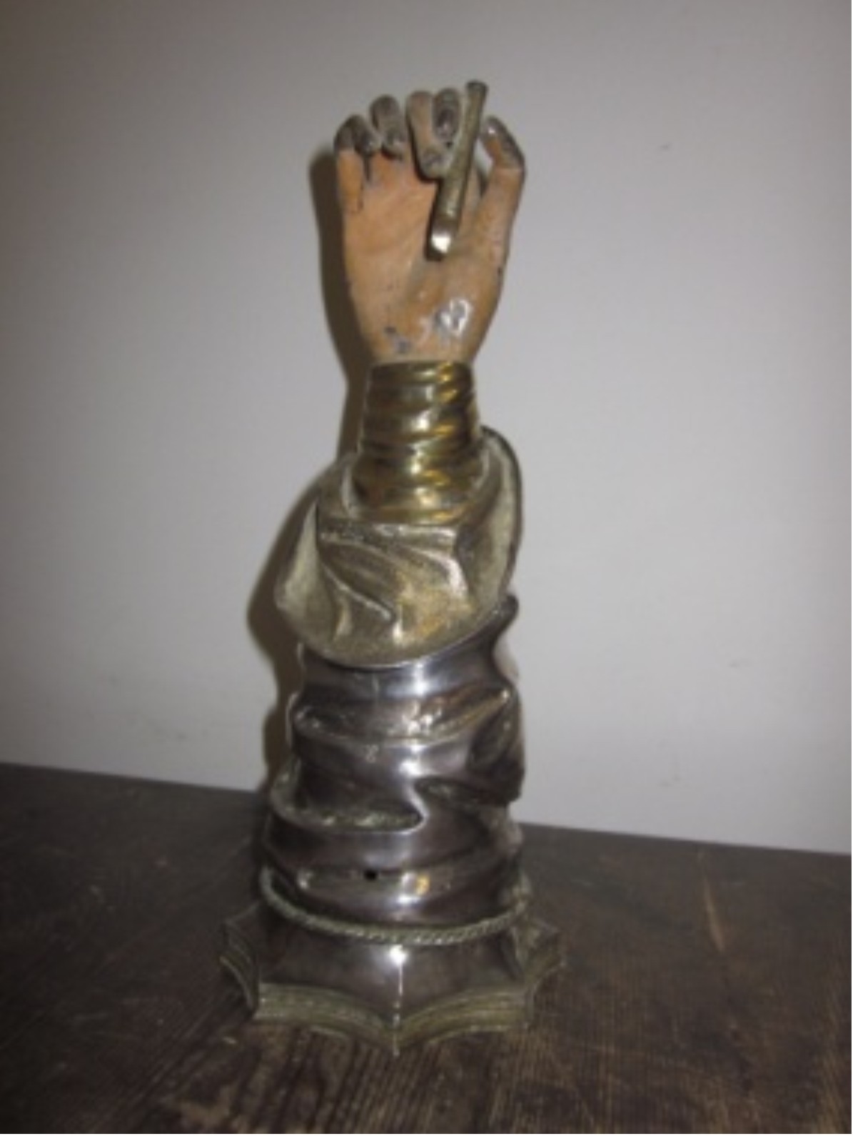 celosamente en un brazo de plata que se hizo al mandato del Obispo Visitador